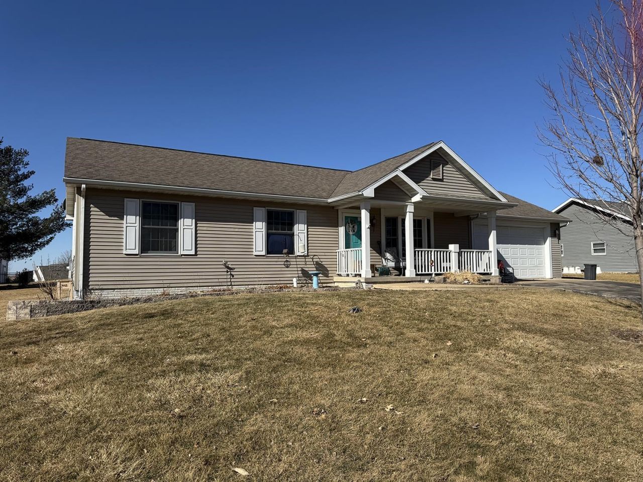 Welcome to this ranch home built in 2008, offering comfortable main level living with room to grow! The inviting living room features a gas fireplace with stone surround, creating a warm focal point, and flows seamlessly into the dining area and U-shaped kitchen with breakfast bar, perfect for everyday living and entertaining. Newer restoration oak hardwood floors extend through the living room, dining area, kitchen, hallway, and primary bedroom, adding warmth and durability. Some rooms have been freshly painted, and the home features newer appliances for added peace of mind. The main level includes three bedrooms, a full bathroom with newer toilet and lighting, and a convenient laundry closet located in the hallway. The unfinished lower level offers excellent expansion potential, already stubbed for a second full bathroom. Even better, the seller is including a new shower, vanity, lavatory sink, lighting, and exhaust fan, giving the new owner a head start on completing the space. Lower level couches and tables will also remain. Situated on a spacious 0.51 acre double city lot, this property provides plenty of outdoor space to enjoy. Additional features include an attached garage, asphalt driveway, and underground invisible fencing. This move-in ready home combines modern updates with future potential, ready for its next owner to make it their own!