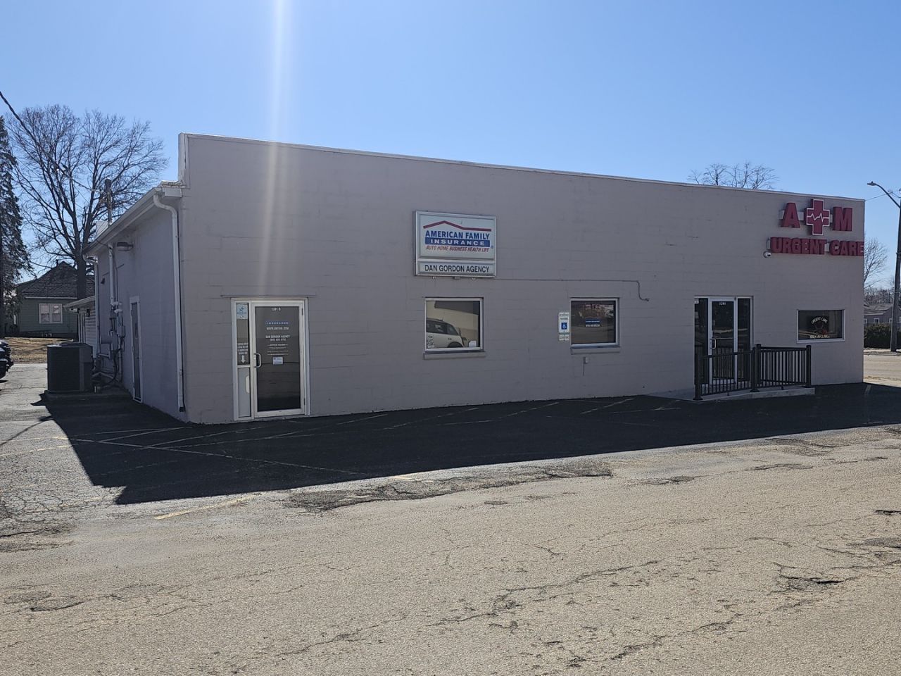 Very Profitable 3 unit commercial building on a double corner lot with an extra lot across the alley. It is located on Rt. 40/1st Ave in Rock Falls IL 1 mile north of Interstate 88 on the Right hand side of the road. Easy access! Unit 1 is currently an Urgent CareClinic - 1860 sq ft with a large reception area -kitchenette - shared bathrooms! Current rent is $1600 . Unit 2 is 540 sq ft - 2 offices - reception area - shared bathrooms - current rent is $600 (utilities included). Unit 3 is approx 1006 sq ft - open concept - private 1/2 bath - plumbed for a 2nd 1/2 bath. This unit is owner occupied as a real estate office. There is also a 15 x 15 separate storage area with a private access! Parking for 20 + cars. Lot across alley is 50 x 142. Included in price. Taxes shown include extra lot. Owner is willing to lease back. Broker Owned.