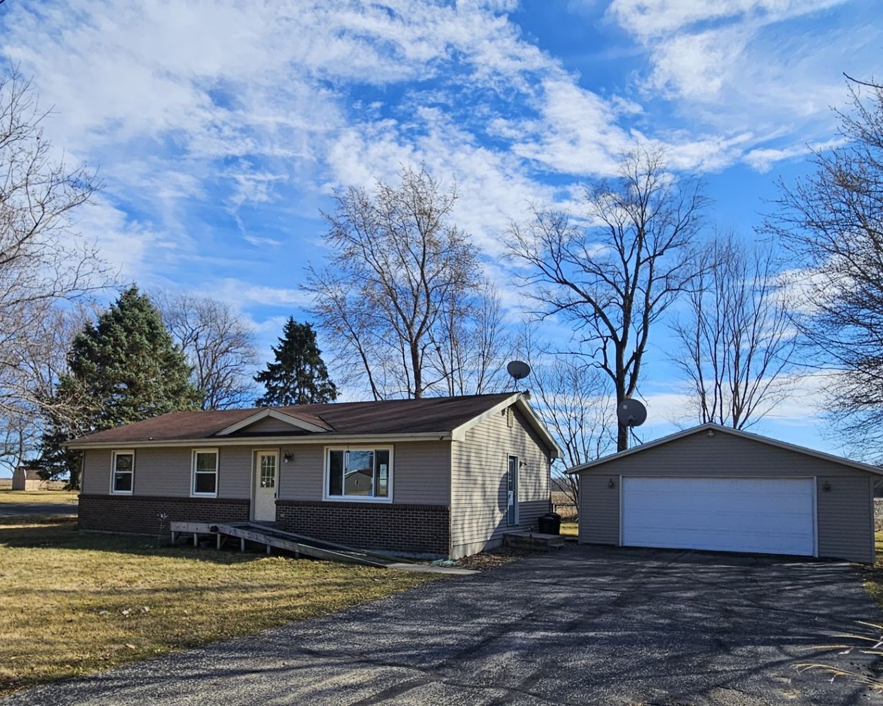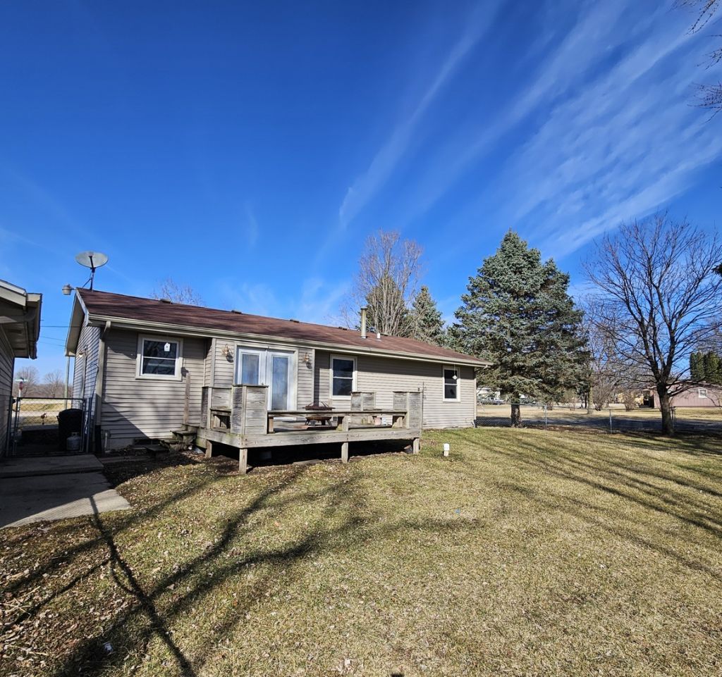 Welcome home to this classic three bedroom ranch. Freshly painted and move-in ready! Beautiful hardwood floors throughout. Newly updated master bath with a convenient and stylish walk-in shower. The spacious kitchen provides plenty of cabinet space along with plenty of natural light coming in through the double patio doors. Walk right out and onto the backyard deck, the perfect place to enjoy morning coffee or meals. The property is almost an acre with fenced-in backyard space and backing up to a farm field. You will find an abundance of parking in either separate driveway leading up to four car or two car garages. The oversized four car garage will make the perfect workshop for all kinds of projects. Country living with county taxes just a short drive from the city.